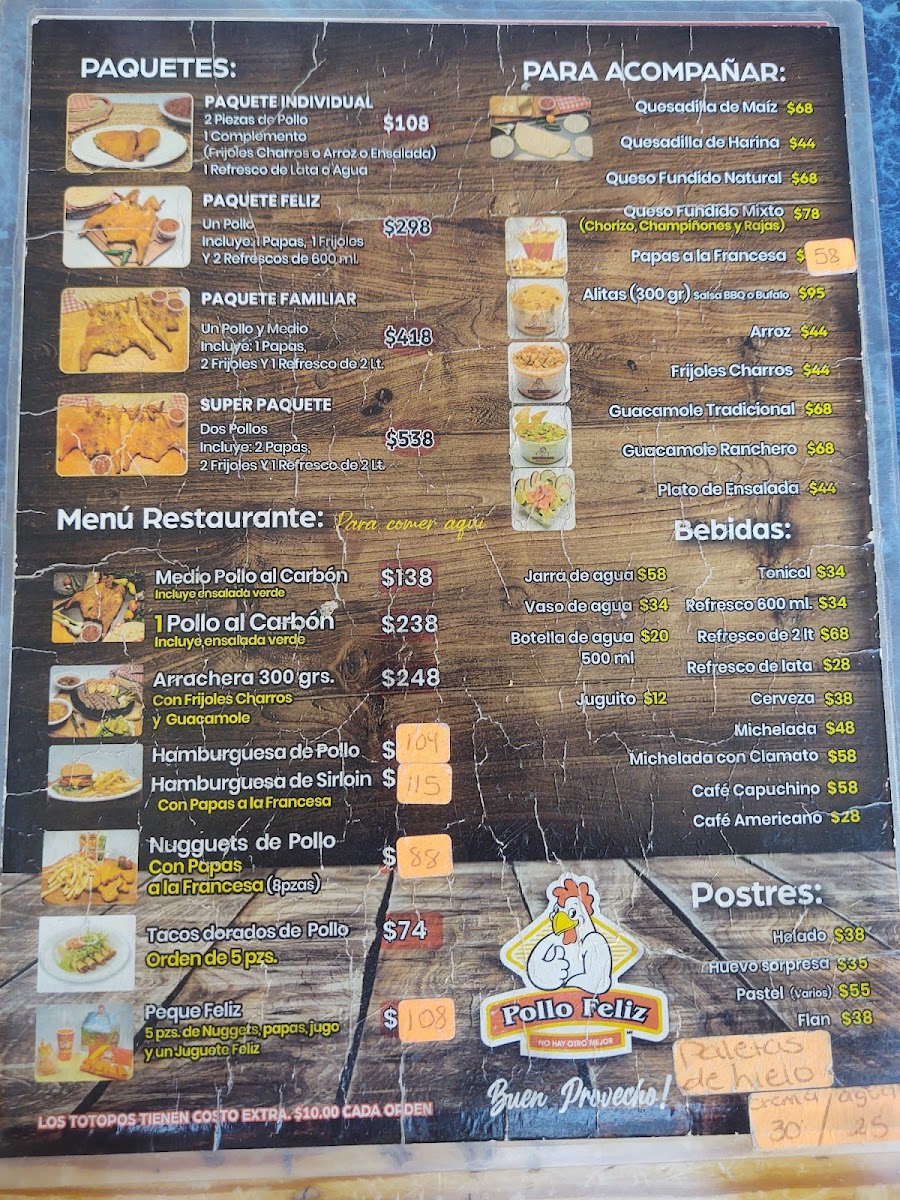 Introducing the Menu at Pollo Feliz 38010 Celaya